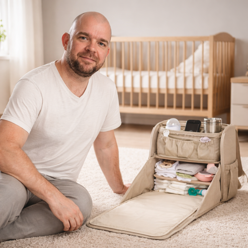 Le sac à langer organisé avec tapis de change intégré, pour retrouver l’essentiel en quelques secondes et changer bébé proprement, partout.